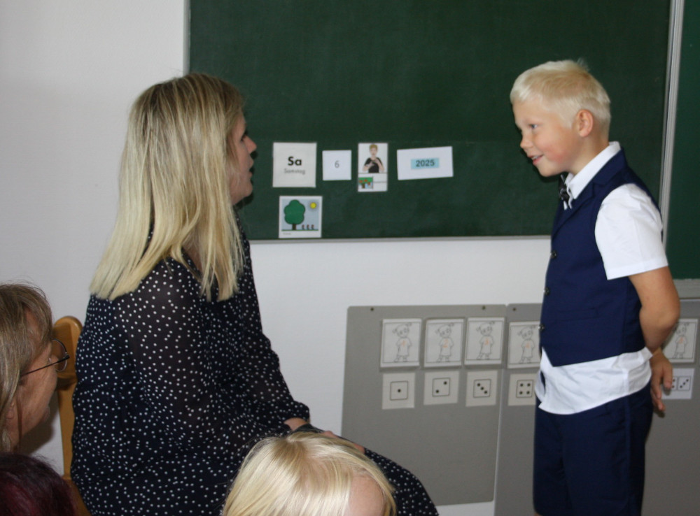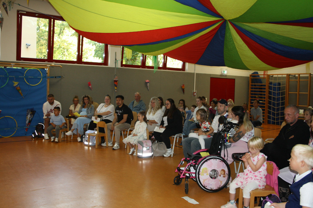 Am Samstag, den 6. September 2025 war am Vormittag viel los auf den Straßen Brandenburgs, denn die neuen Schüler/innen wurden in ihren Schulen zur Einschulungsfeier erwartet. So war es auch bei uns in der Schule am Wald. Kurz nach 10:30 Uhr begrüßte Fr. Giesa die Kinder und ihre Angehörigen in unserer Turnhalle. Gebannt verfolgten die zwei Jungen und vier Mädchen das bunte Programm mit viel Musik, bis sie von den pädagogischen Mitarbeiter/innen im "Schulzug" in ihre neue Klasse und zu ihrer ersten Schulstunde geleitet wurden.