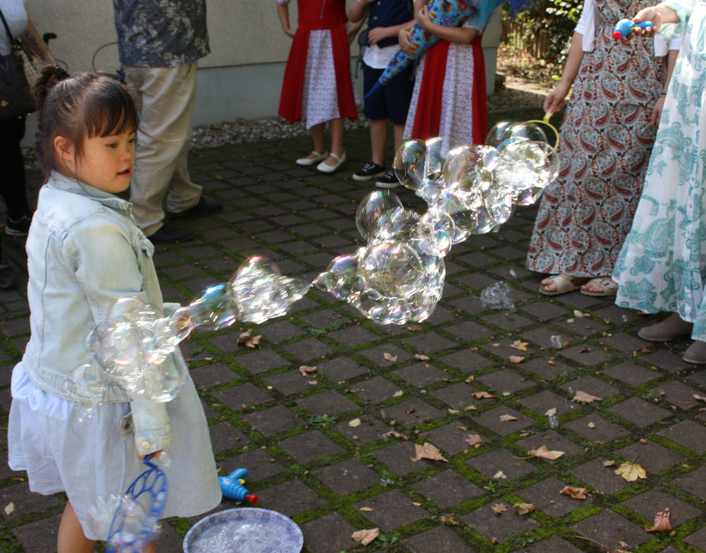 Die folgende Zeit wusste die Schulleiterin für die in der Turnhalle verbliebenen Gäste durch eine kurzweilige Geschichte gekonnt zu überbrücken. Nach eine Stärkung am Büffet mit Kaffee, Saft, Kuchen und Keksen erschienen die Einschüler/innen auch schon wieder in der Turnhalle und konnten dort unter viel Applaus - endlich - ihre großen Zuckertüten in Empfang nehmen. Nach einem letzten Lied leerte sich die Turnhalle bald, um noch rasch ein paar Seifenblasen in den heiter bis wolkigen Brandenburger Spätsommerhimmel zu schicken. Wir wünschen unseren neuen Schüler/innen viel Freude in der Schule am Wald - und natürlich auch viel Erfolg beim Lernen. Herzlich Willkommen!